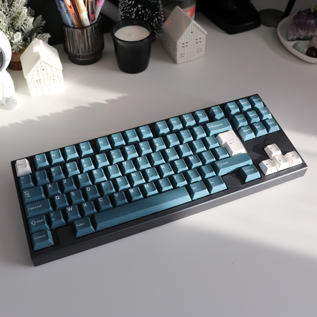 Building this Glacier80 was quite simple. There are not a lot of screws other than the ones to close up the case which is such a time saver. I would say the longest part was soldering because I don’t really enjoy that process as much but it went smoothly. Once the pcb, 3.5mm Poron PCB foam, PC plate and switches were assembled I simply put more foam on the bottom of the case, installed the gasket foam and it was time to install the pcb and close the board back up. For the keycaps I went with my fav line which are the DCX permafrost ones from Drop and there it was.. my dream winter board !